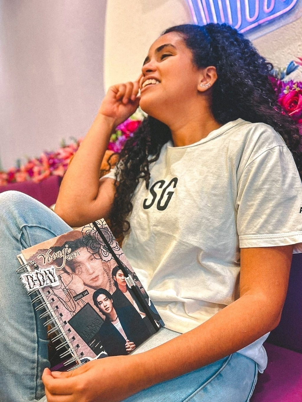 100 Folhas internas personalizadas, em gramatura 90g, o que permite você escrever sem manchar o outro lado